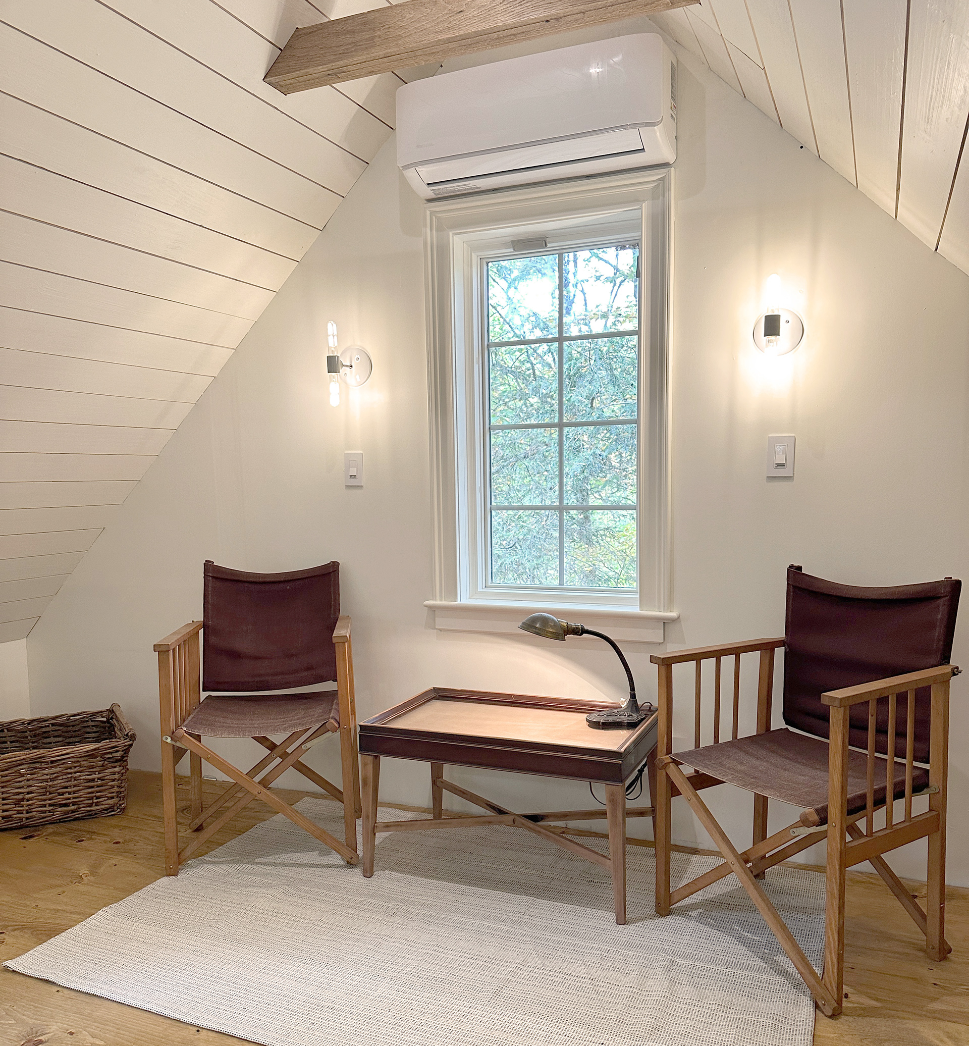 A pull-down screen and a 4k projector delivers Netflix movies.